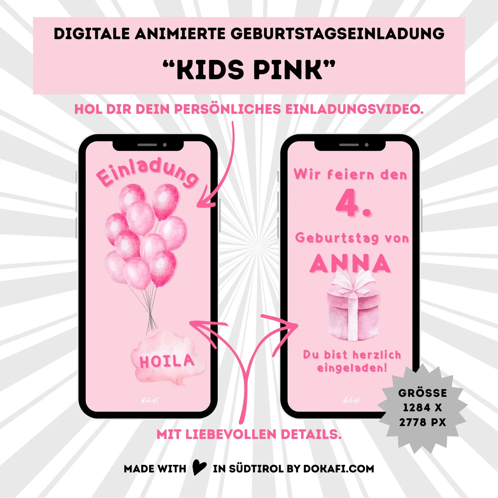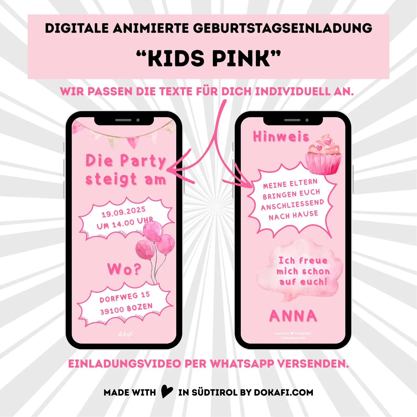 Animierte Geburtstagseinladung "Kids Pink" | Digitaler Download | Video | Fröhliches Design | Einladung für Kinder | Digitale Einladung für Whatsapp | Instagram | Tiktok