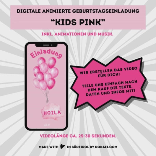 Digitale Datei: Animierte Video Geburtstagseinladung "Kids Pink"