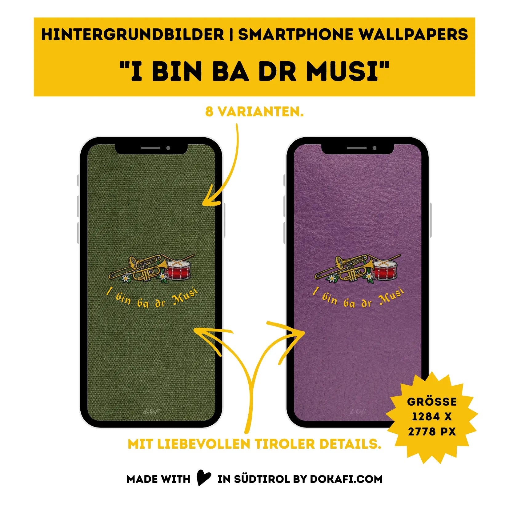 Hintergrundbilder "I bin ba dr Musi" Smartphone Wallpapers | Digitaler Download | Tiroler Design Musikkapelle | 8 Bilder | für Android und iPhone