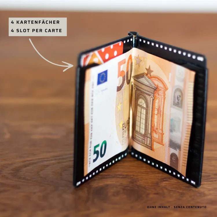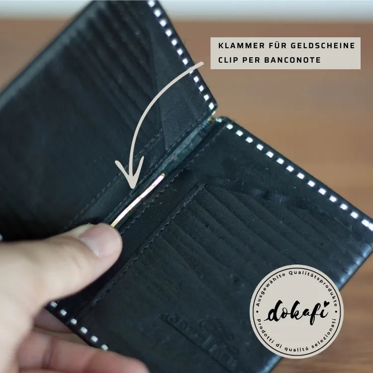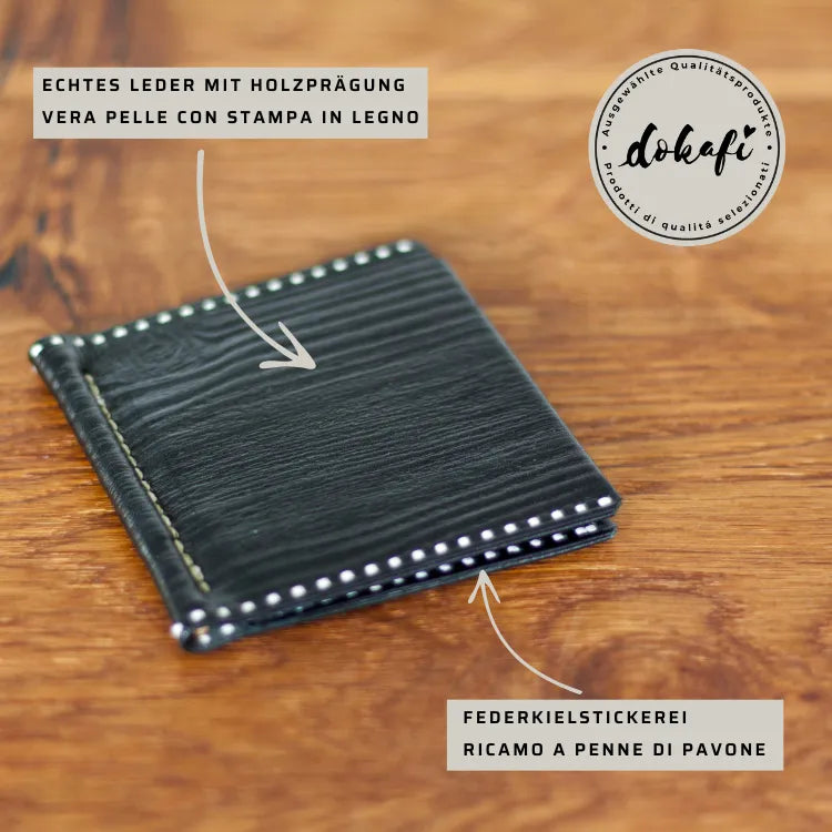 Kartenetui mit Geldklammer Leder Holzoptik schwarz Südtirol