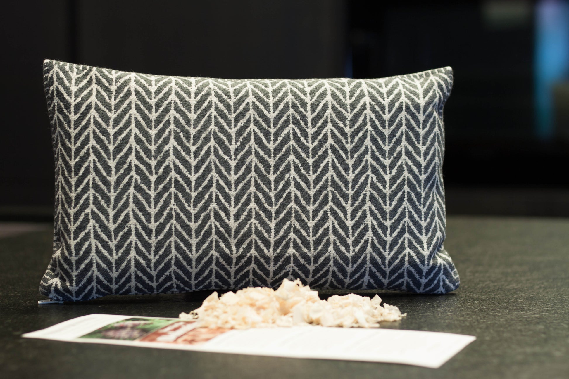 Dieses gewebte Zirbenkissen enthält ein separates Innenkissen mit Zirbenholzspänen, somit kann die Kissenhülle zum Waschen mit 40° abgenommen werden.