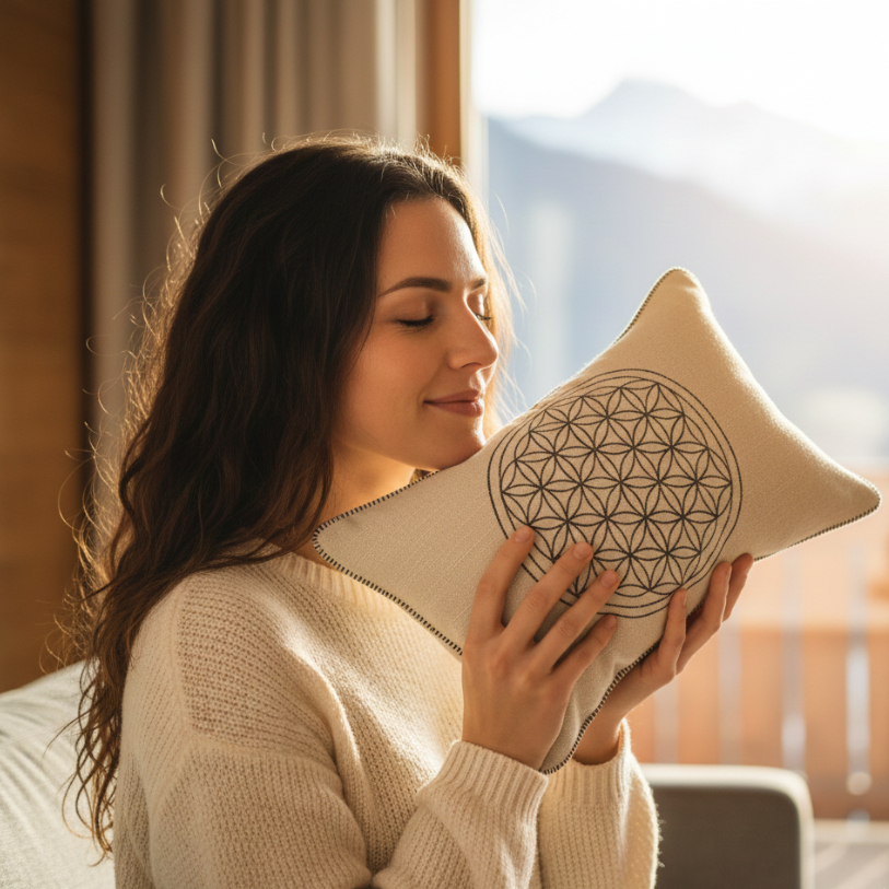 Zirbenkissen LEBENSBLUME 20x35 hell Südtirol