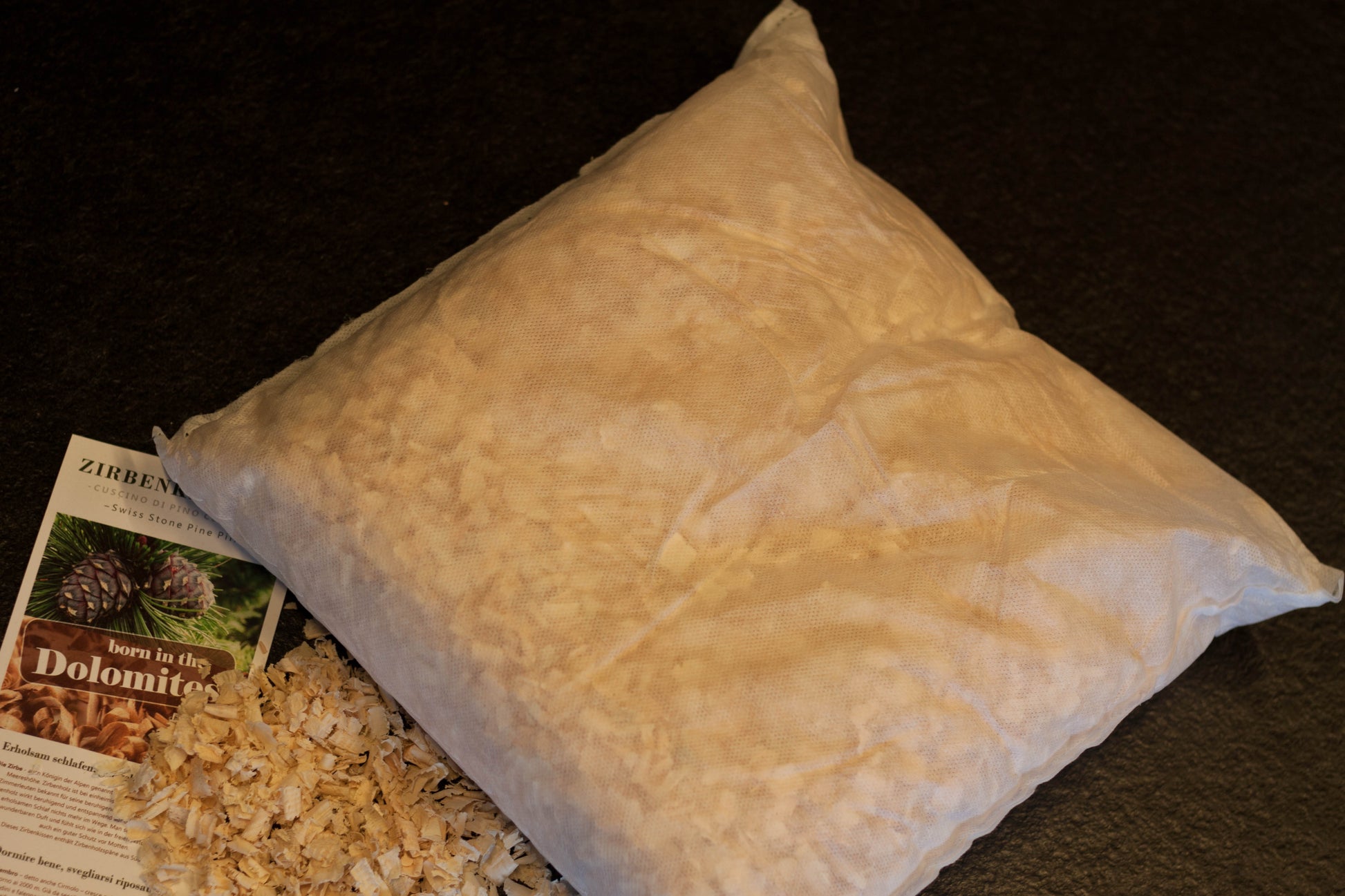 Dieses Innenkissen ist gefüllt mit Zirbenholzspänen.
